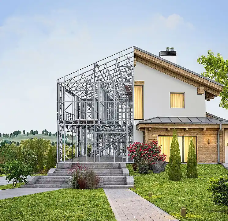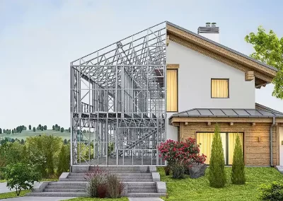 En todo casa construimos con material metálico, compuesto de acero galvanizado. Sistema de construcción que evita plagas de termitas, además, por sus características permite una mayor rapidez en los procesos de construcción.